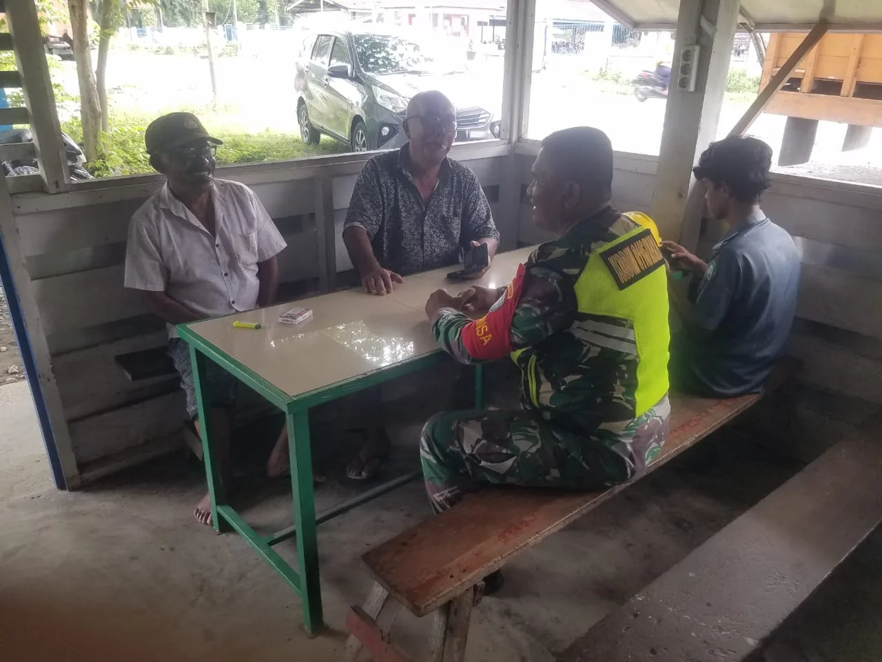 Serma Wandi Suwito sebagai Babinsa Posramil Beutong Ateuh Banggalang yang mendapat tugas melaksanakan Kegiatan Teritorial di Desa Binaan yaitu Desa Blang Meurandeh Kab. Nagan Raya menyempatkan untuk melaksanakan komsos di salah satu warung kopi bersama tokoh masyarakat tersebut “.