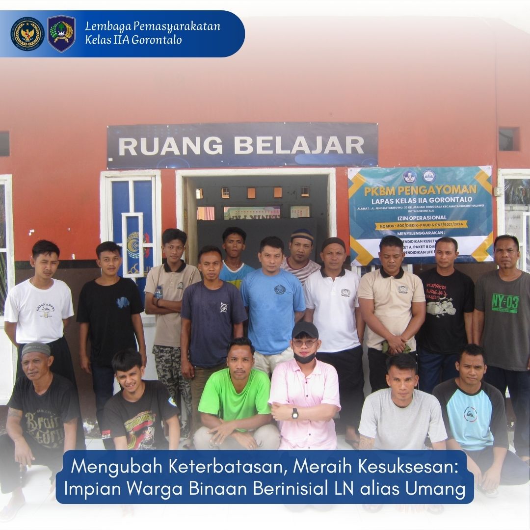 Gorontalo – INFO_PAS – Dinding tinggi dan jeruji besi di Lapas Kelas IIA Gorontalo tak menyurutkan semangat seorang warga binaan sebut saja LN, yang akrab disapa Umang, untuk terus menjemput masa depan yang lebih baik. Sebagai peserta Program Kesetaraan Paket C yang difasilitasi oleh PKBM Pengayoman, Umang menjadikan pendidikan sebagai jalan perubahan dan harapan.