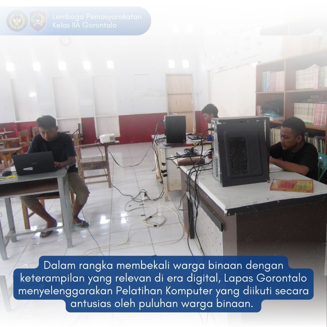 Gorontalo – INFO_PAS –Senin (19/05) Dalam rangka membekali warga binaan dengan keterampilan yang relevan di era digital, Lembaga Pemasyarakatan Kelas IIA Gorontalo menyelenggarakan Pelatihan Komputer yang diikuti secara antusias oleh puluhan warga binaan. Kegiatan ini merupakan bagian dari program pembinaan kemandirian yang bertujuan untuk menyiapkan warga binaan agar lebih siap menghadapi dunia kerja setelah bebas nanti.