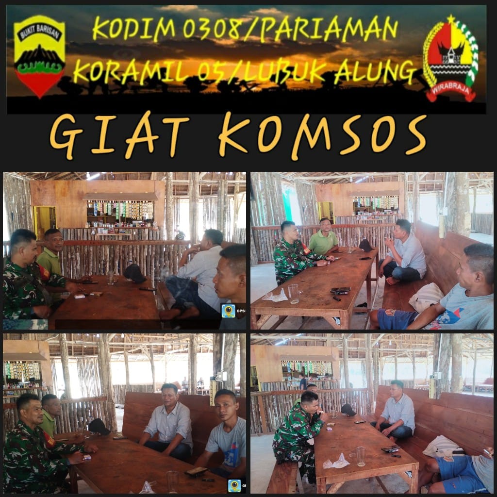 LUBUK ALUNG, – Babinsa Koramil 05/Lubuk Alung Sertu Hartono Melaksanakan Komsos (Komunikasi sosial) dengan tokoh Masyarakat tentang pentingnya menjaga kerukunan antar warga di Nagari Sikabu Kecamatan Lubuk Alung, Kabupaten Padang Pariaman, Kabu (03/07/2025).