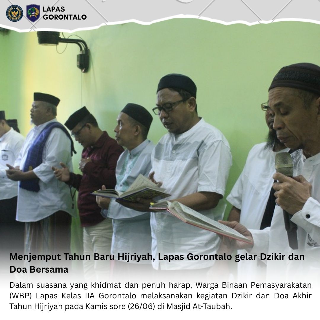 Gorontalo – INFO_PAS – Dalam suasana yang khidmat dan penuh harap, Warga Binaan Pemasyarakatan (WBP) Lapas Kelas IIA Gorontalo melaksanakan kegiatan Dzikir dan Doa Akhir Tahun Hijriyah pada Kamis sore (26/06) di Masjid At-Taubah.