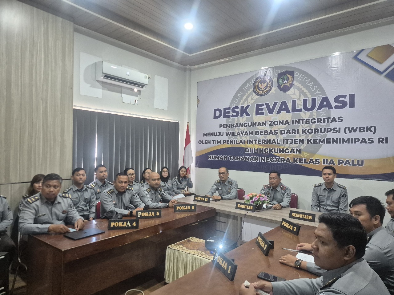 Hal ini dibuktikan dengan partisipasi aktif dan penuh keseriusan jajaran Rutan Palu dalam pelaksanaan desk evaluasi ZI yang digelar oleh Tim Penilai Internal (TPI) dari Inspektorat Jenderal Kementerian Imigrasi dan Pemasyarakatan Republik Indonesia.