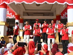 Ribuan masyarakat hadir mengenakan nuansa merah putih, memadati lapangan sejak pagi hari.
