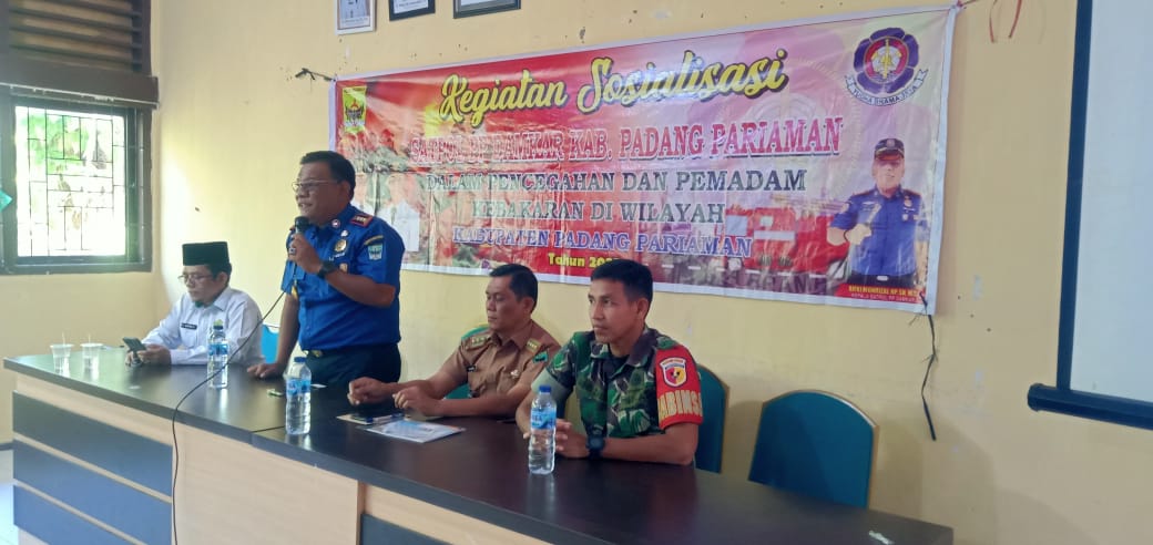 Dinas Pemadam Kebakaran dan Penyelamatan Kabupaten Padang Pariaman (Damkar Padang Pariaman) melaksanakan kegiatan sosialisasi edukasi pencegahan dan penanggulangan kebakaran di Aula Kantor Camat Batang Anai, Kecamatan Padang Pariaman, Senin (08/09/2025).