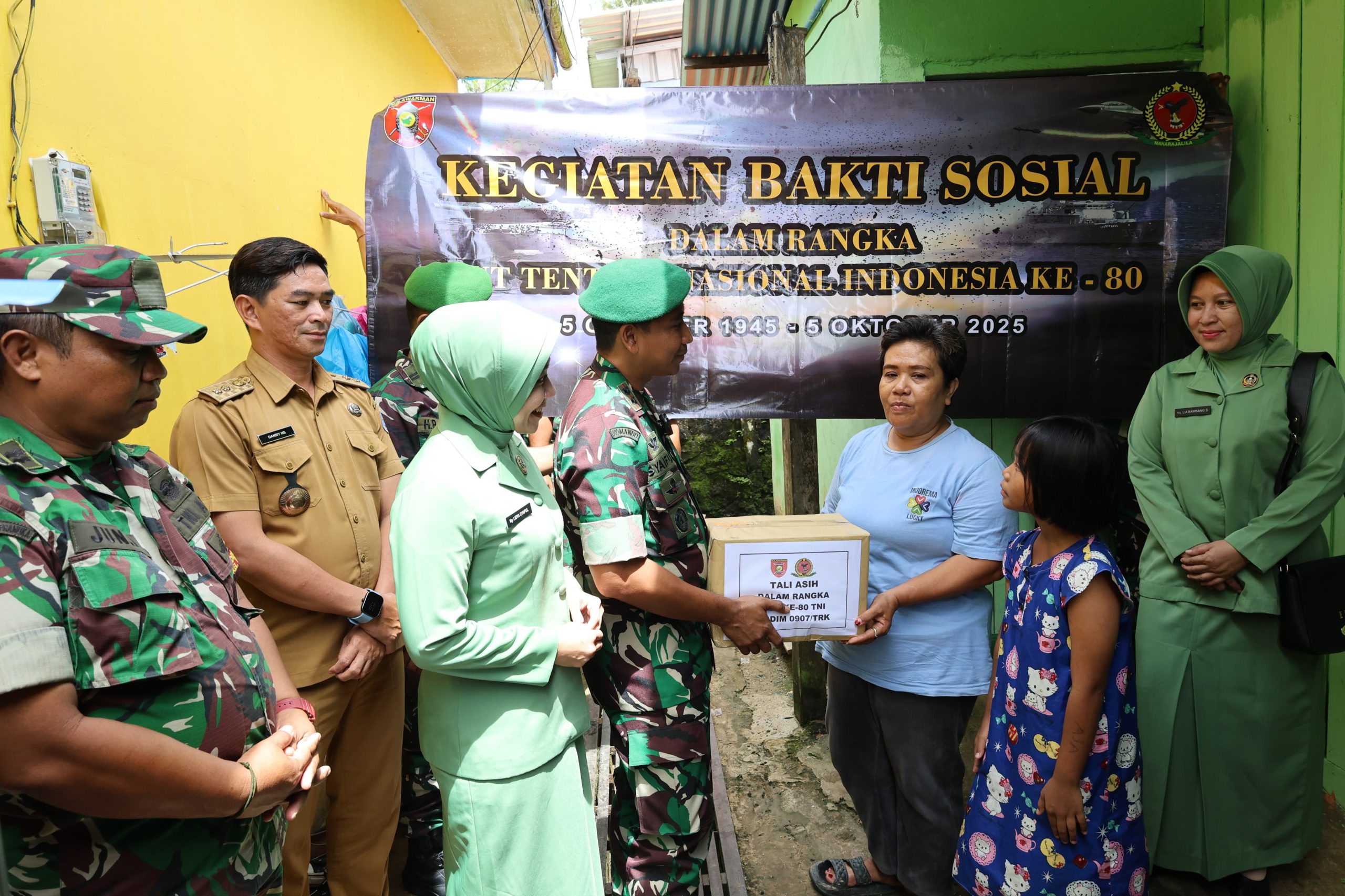 Tarakan – Momentum Hari Ulang Tahun ke-80 TNI, Kodim 0907/Trk melaksanakan bakti sosial (Anjang Sana) pembagian sembako kepada warga masyarakat,
