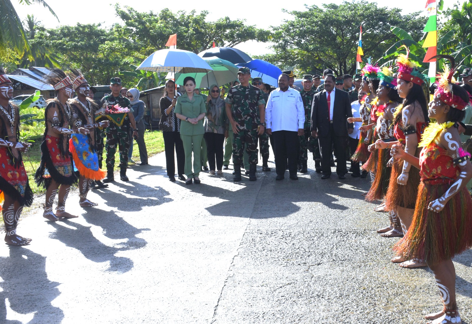 Sorong – Papua Barat Daya, Komandan Resor Militer (Danrem) 181/PVT Brigjen TNI Totok Sutriono, S.Sos., M.M., mendampingi Panglima Komando Daerah Militer (Pangdam) XVIII/Kasuari Mayjen TNI Jimmy Ramoz Manalu, S.Hub.Int., M.H.I., dalam upacara penutupan program TNI Manunggal Membangun Desa (TMMD) ke-124 Tahun 2025 yang dilangsungkan di Kampung Jeflio, Distrik Mayamuk, Kabupaten Sorong, Papua Barat Daya, Rabu (4/6//25).