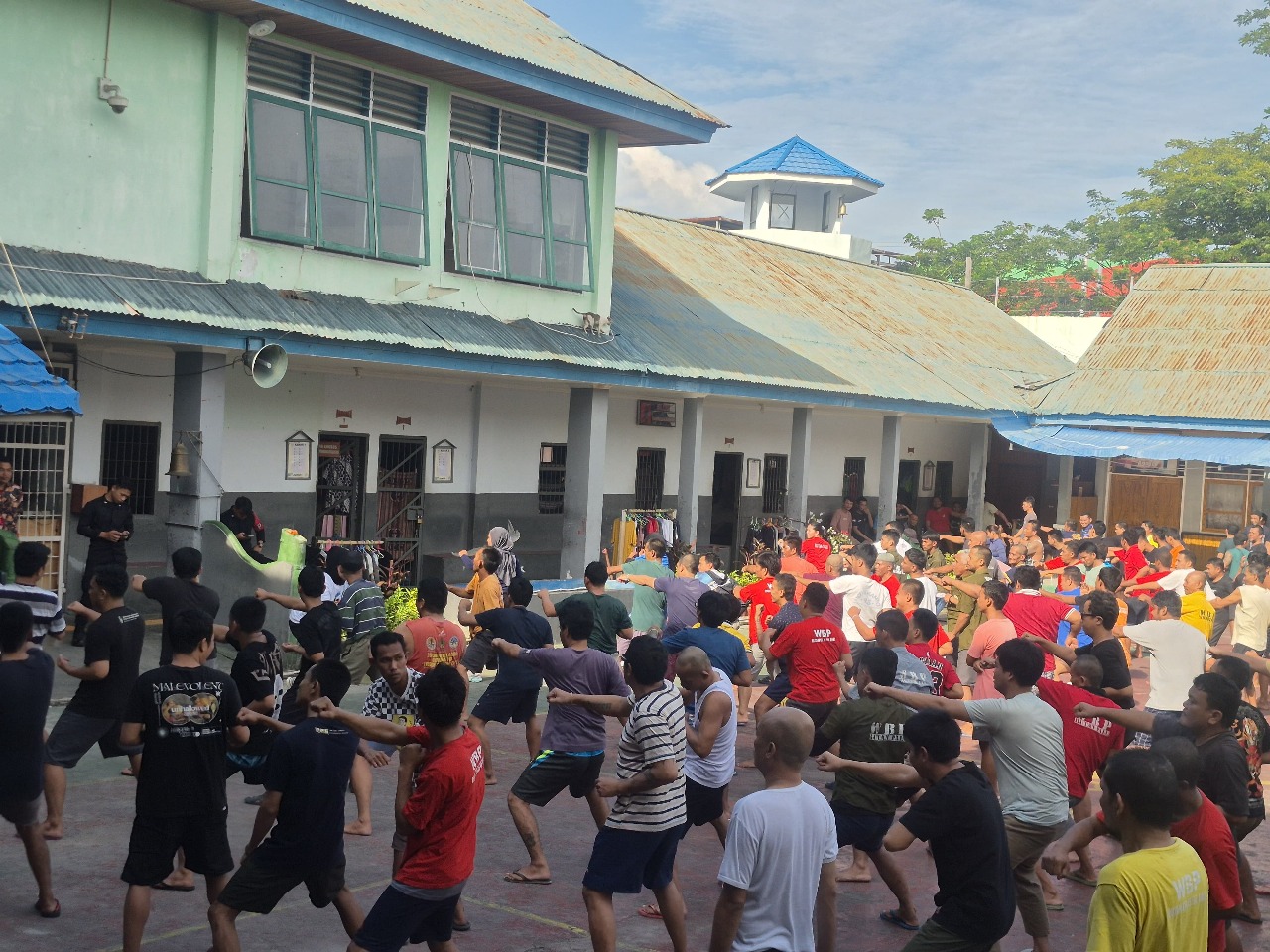 Sebagai salah satu upaya menjaga kesehatan tersebut, Rutan Palu kembali menggelar kegiatan senam pagi rutin bersama yang dilaksanakan di lapangan olahraga blok hunian. Kegiatan ini menjadi wadah positif untuk membangun semangat dan kebugaran warga binaan.
