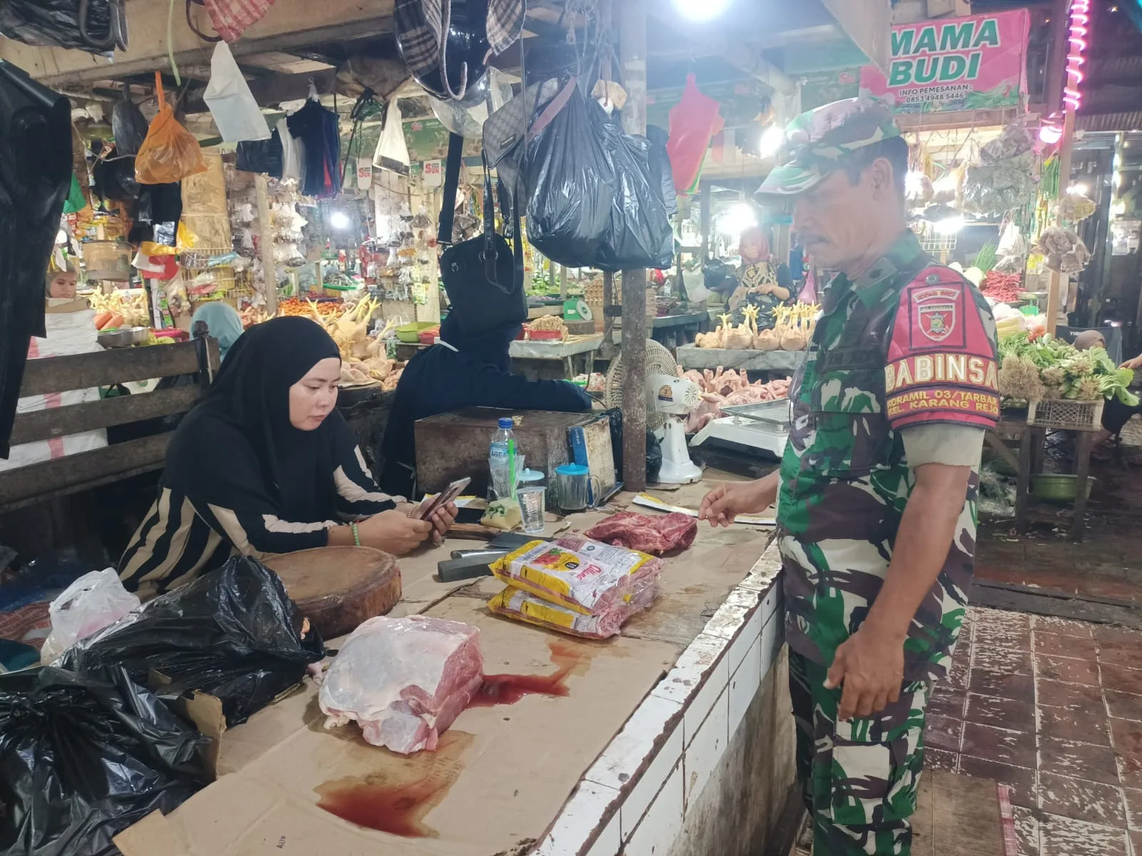 Tarakan — Dalam upaya menjaga stabilitas harga dan ketersediaan bahan kebutuhan pokok masyarakat menjelang lebaran, Babinsa Koramil 0907/03 Tarbar Pelda Jarot Santosa melaksanakan kegiatan pengecekan harga dan stok sembako di Pasar Ghuser Kelurahan Karang Rejo, Kecamatan Tarakan Barat, Jumat (20/02/2026).