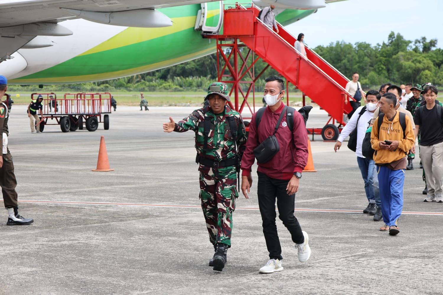 “Ketika pesawat mendarat Danrem berkoordinasi dengan Lanud dan Instansi terkait dalam pelaksanaan pendaratan darurat. Masing-masing Instansi terkait di bawah koordinasi Danrem melaksanakan penyiapan segala sarana dan prasarana. Kemudian dilakukan Evakuasi dan Isolasi. Jadi, Semua personel berada pada radius 100 meter dari pesawat. Pers Tim Evakuasi dibantu POM AU & AD melaks evakuasi penumpang ke tempat yang aman,” urai Dandim 0907/Trk.