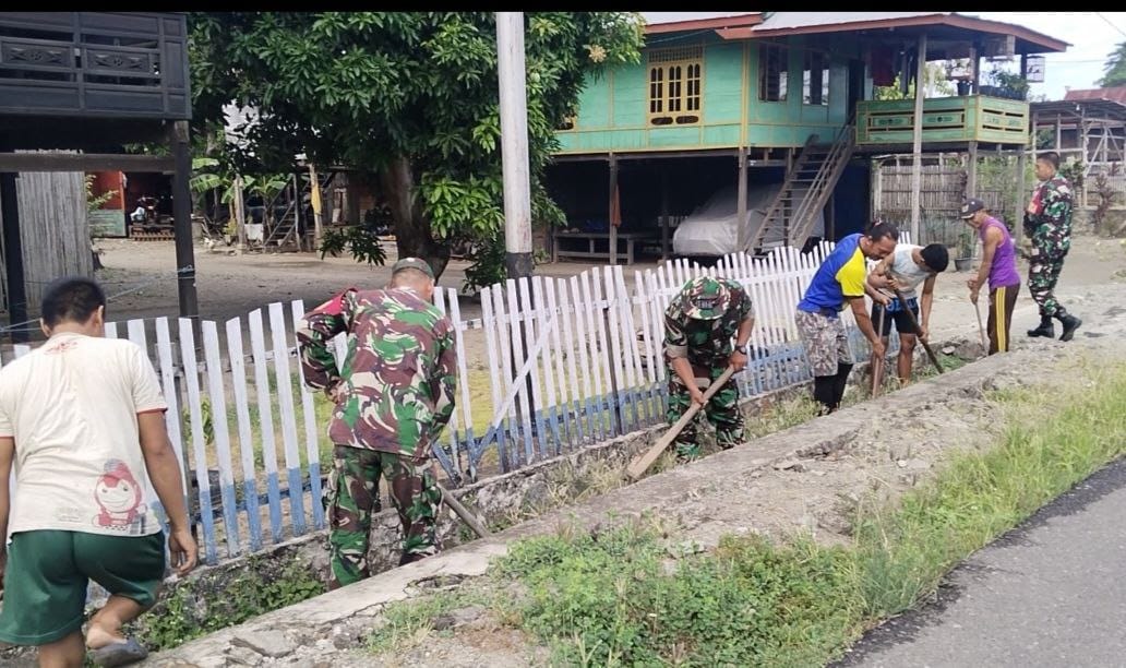 Pinrang_ Sebagai bentuk kepedulian terhadap kebersihan Lingkungan, anggota Koramil-08/Lanrisang Kodim 1404/Pinrang bersama warga melaksanakan kerja bakti pembersihan saluran air di Dusun Kaloang Desa Lerang Kecamatan Lanrisang Kabupaten Pinrang, Senin (27/04/2025).