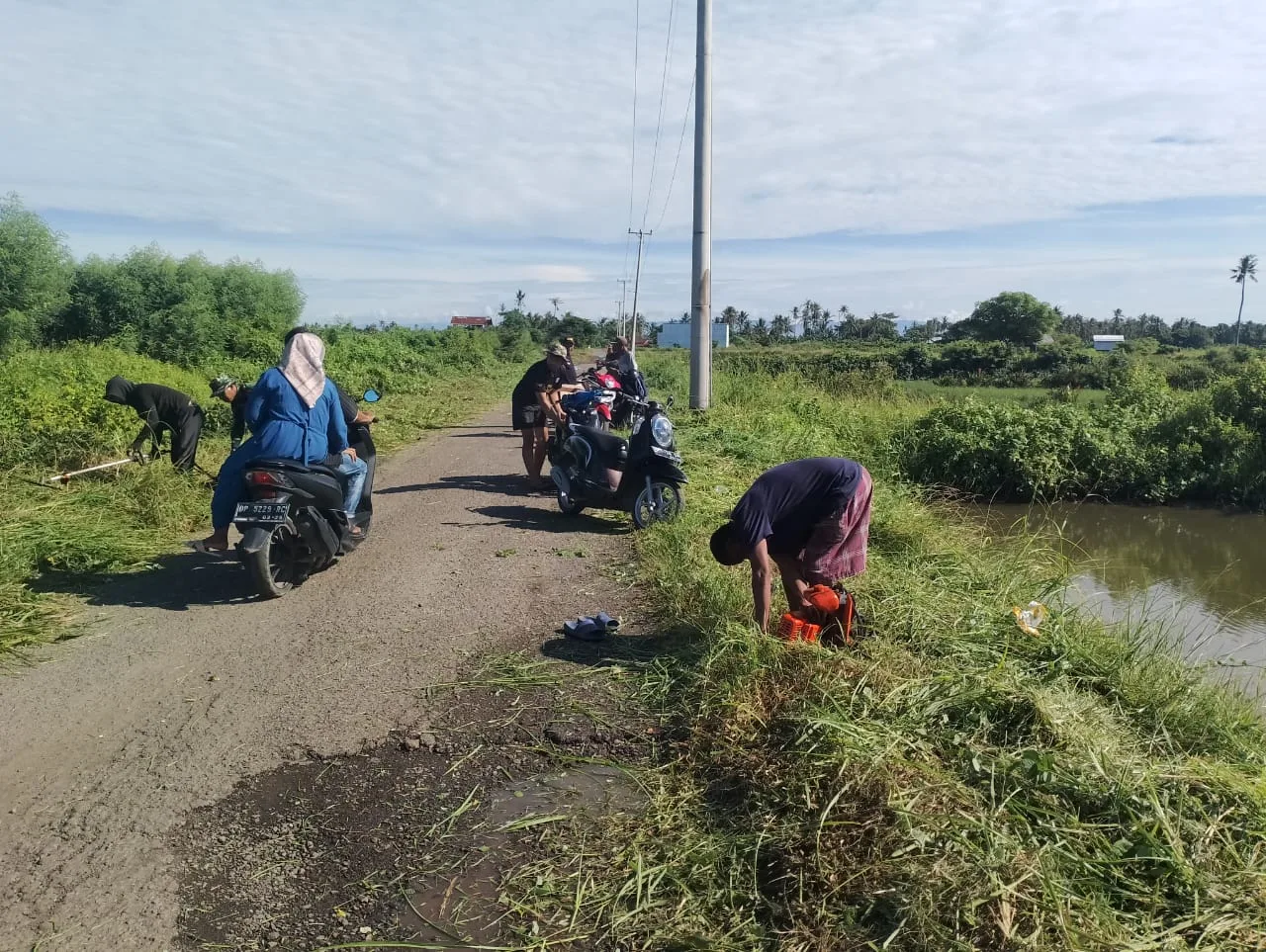 Pinrang_ Babinsa Koramil 1404-01/Suppa Kodim 1404/Pinrang menunjukkan kepedulian terhadap kebersihan lingkungan dengan mengahjak warga melaksanakan kerja bakti pembersihan jalan di Dusun Ponging Bonging, Desa Lotang Salo, Kecamatan Suppa, Kabupaten Pinrang, Minggu (26/10/2025)..