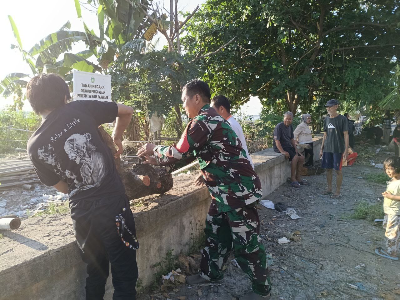 Peduli Lingkungan, Babinsa Koramil 1405-03/Bacukiki Bersama Warga Gotong Royong Bersihkan Rumput dan Sampah