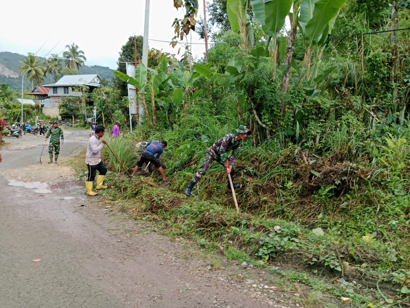 Pada kesempatan tersebut Pelda Yudin Djoni melaksanakan gotong-royong bersama masyarakat membersihkan sampah dan rumput liar di pinggir badan jalan di wilayah binaan tersebut, kondisi tersebut mendorong Babinsa mengajak masyarakat untuk bergotong royong guna melaksanakan pembersihan rumput dan sampah sehingga nantinya membuat kondisi jalan menjadi kelihatan bersih dan terpelihara.