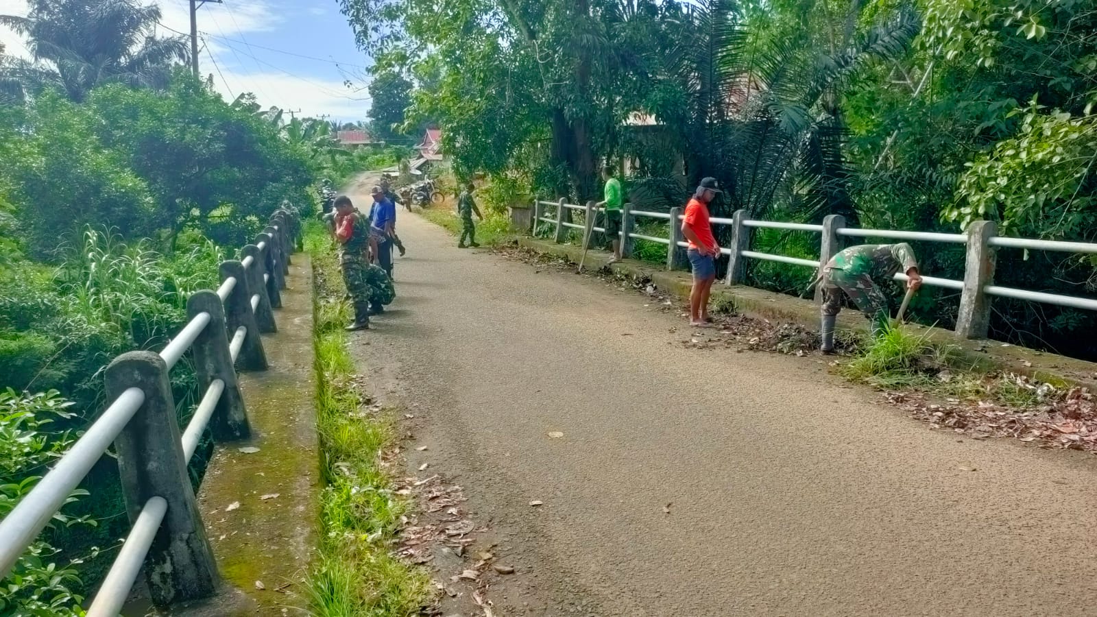 Pada kesempatan tersebut Peltu Hasrullah Santa melaksanakan gotong-royong bersama masyarakat membersihkan sampah dan rumput liar di pinggir badan jalan di wilayah binaan tersebut, kondisi tersebut mendorong Babinsa mengajak masyarakat untuk bergotong royong guna melaksanakan pembersihan rumput dan sampah sehingga nantinya membuat kondisi jalan menjadi kelihatan bersih dan terpelihara.