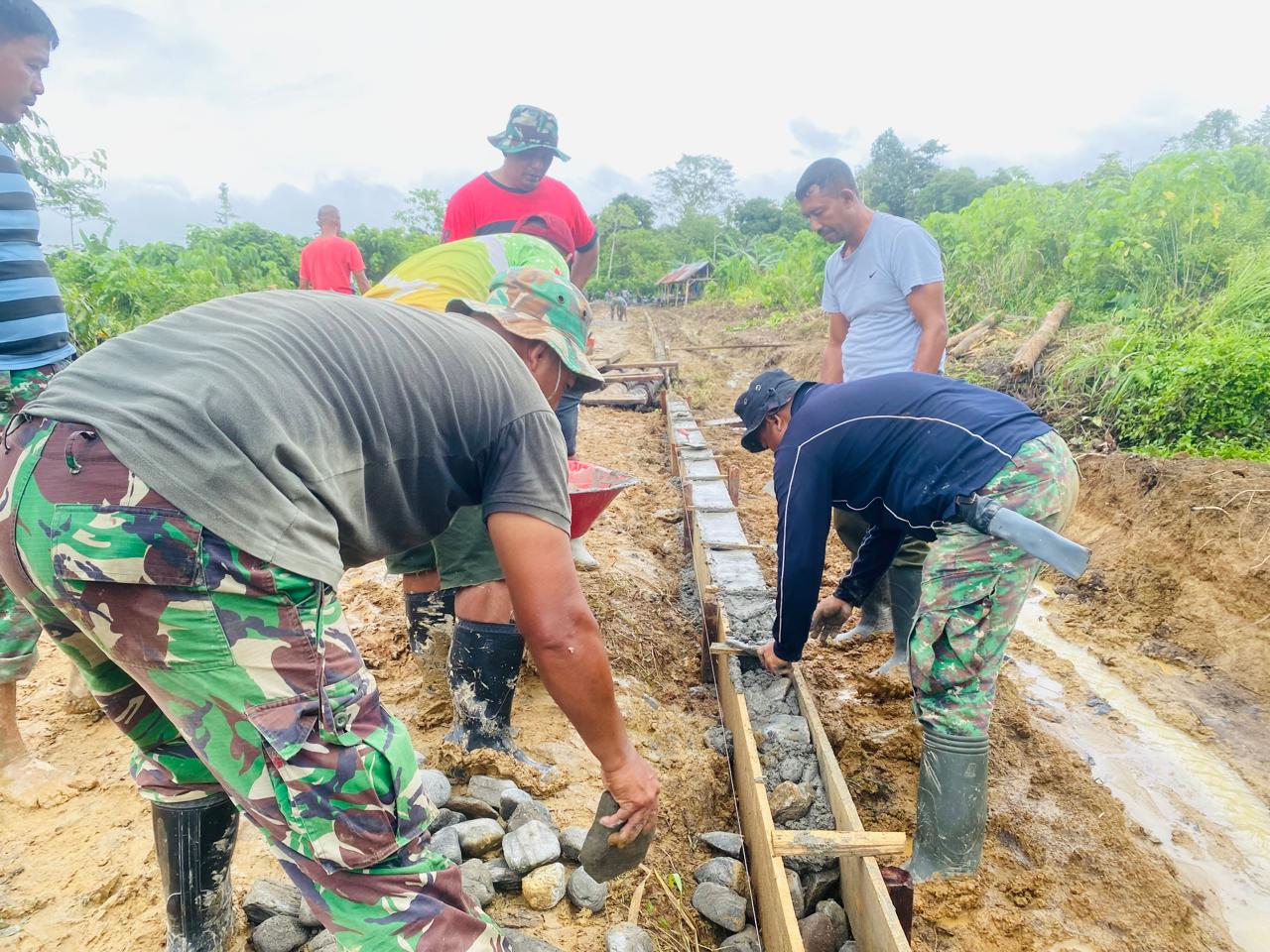 Salah satu Personil Satgas TMMD Serda Ode Arwan mengatakan sampai hari ini progres pembangunan jalan usaha tani sudah mencapai 200 meter.
