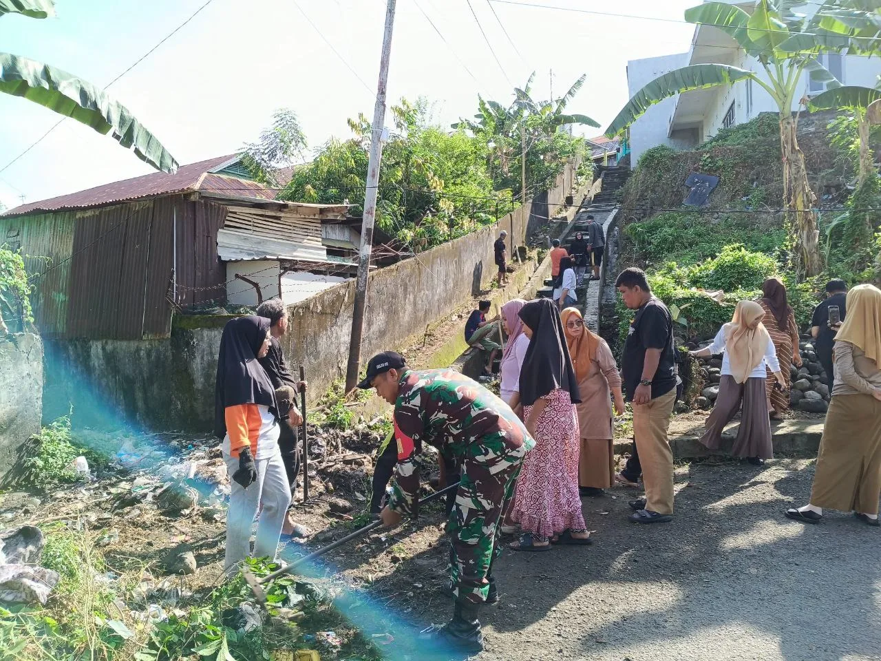 KODIM 1405/PAREPARE – Dalam mewujudkan lingkungan yang bersih dan asri, Babinsa Koramil 03/Bacukiki Serda Ridwan bersama staf Kelurahan, Mahasiswa serta masyarakat Sumpang Minagae melaksanakan kerja bakti dengan sasaran membersihkan tumpukan sampah dan saluran air bertempat di Jln. Andi Dewan, Kelurahan Sumpang Minagae, Kecamatan Bacukiki Barat, Kota Parepare. Selasa (30/09/2025)