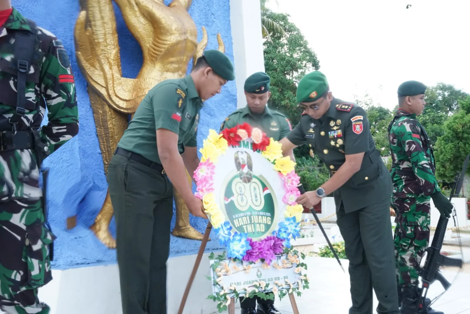Peringatan Hari Juang TNI AD yang diikuti personel Kodim baik Perwira, Bintara Tamtama dan Anggota Balak Aju,Personil Yonif Raider 613/Rja,PNS serta Persit Kartika Chandra Kirana Cabang XIX Dim 0907/Trk, Persit KCK Ranting II Yonif Raider 613 berlangsung sederhana dan penuh khidmat.