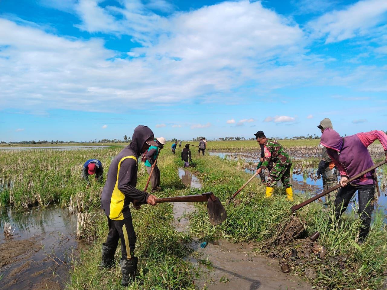 Sertu Rahmat mengatakan kerja bakti ini merupakan salah satu upaya untuk menyukseskan program ketahanan pangan bersama Kelompok Tani dengan membersihkan saluran Irigasi supaya tidak tersumbat yang dapat menyebabkan saluran air kurang lancar.