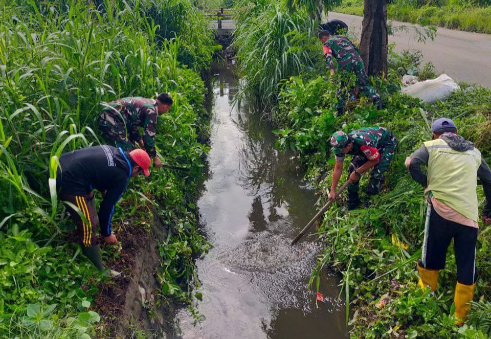 Pinrang_ Demi membantu kelancaran dalam pengolahan lahan pertanian serta mendukung kebutuhan air bagi para petani, Babinsa jajaran Koramil-03/Mattiro Bulu Kodim 1404/Pinrang bersama kelompok tani melaksanakan kerja bakti pembersihan saluran irigasi d Dusun Tanre Assona Desa Padakkalawa Kecamatan Mattiro Sompe Kabupaten Pinrang, Senin (14/04/2025).