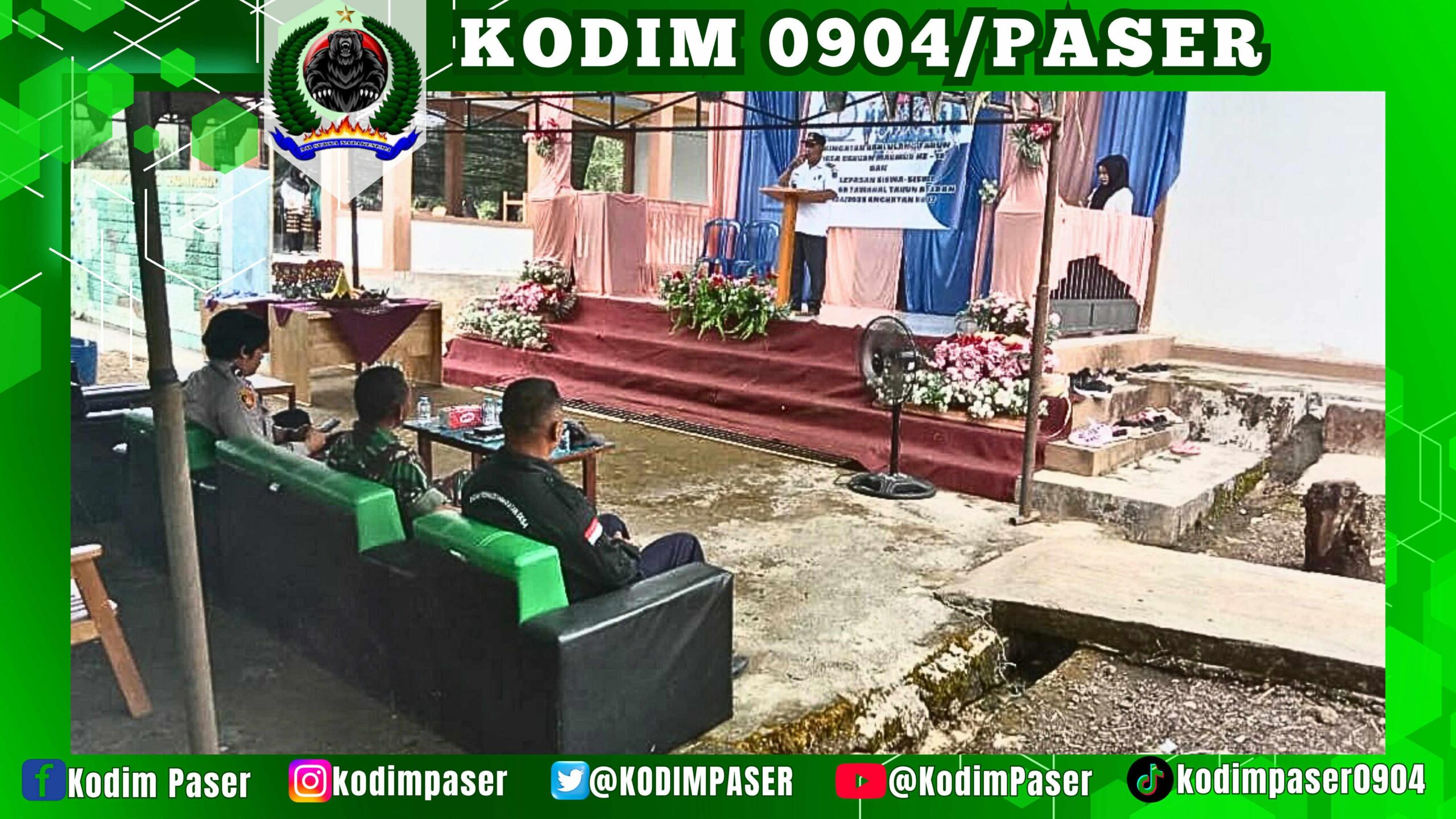 Kodim 0904/Psr, Korem 091/ASN, Kodam VI/Mlw – Babinsa Desa Sekuan Makmur, Sertu Rusbianto menghadiri acara Peringatan HUT (Hari Ulang Tahun) Ke-18 Desa Sekuan Makmur yang dirangkaikan dengan acara Pelepasan peserta didik TK Fajar Tawakal tahun ajaran 2024/2025 angkatan Ke-17 bertempat di Halaman Desa Sekuan Makmur, Kec. Muara komam, Kab. Paser. Kamis (12/6/2025)