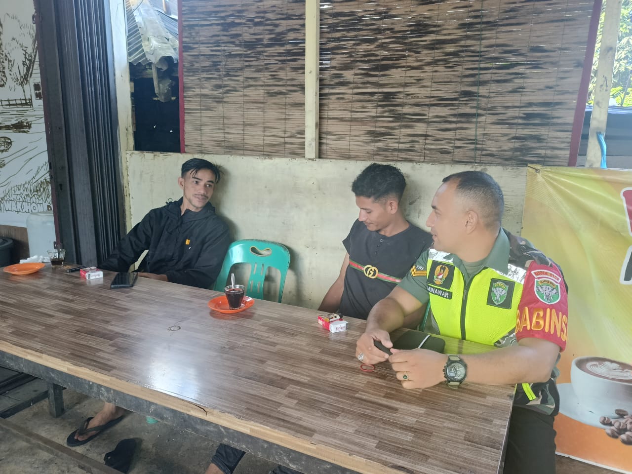 Kegiatan ini merupakan bagian dari rutinitas Babinsa untuk terus hadir di tengah masyarakat, sekaligus sebagai bentuk deteksi dini terhadap potensi gangguan keamanan serta sarana menyampaikan pesan-pesan kamtibmas secara langsung kepada warga.