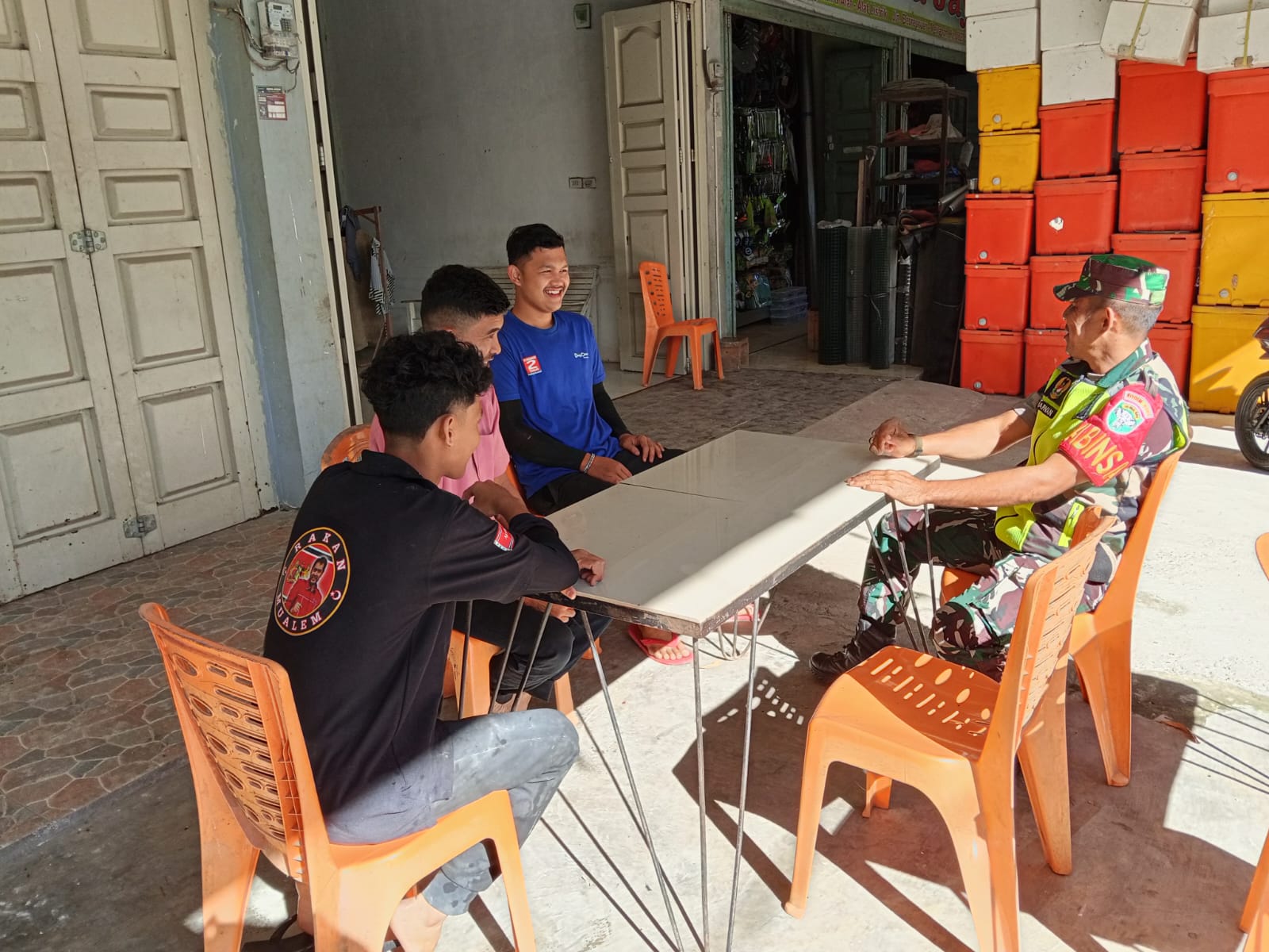 Kegiatan Komsos ini merupakan bagian dari tugas rutin Babinsa dalam menjalin silaturahmi, menggali informasi, serta menyerap aspirasi langsung dari masyarakat. Dalam pertemuan tersebut, Sertu Marwan berdiskusi dengan warga bernama Amirudin serta beberapa tokoh masyarakat lainnya untuk membahas situasi keamanan, sosial, dan potensi persoalan di lingkungan sekitar.