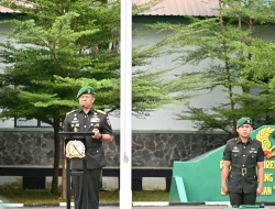 Bone — Danrem 141/Toddopuli Brigjen TNI Andre Clift Rumbayan, S.Sos., M.M., memimpin Upacara Peringatan Hari Juang TNI Angkatan Darat Tahun 2025 di Lapangan Apel Makorem 141/Toddopuli, Jalan Jenderal Sudirman, Kelurahan Manurunge, Kecamatan Tanete Riattang, Kabupaten Bone, Senin (15/12/2025).