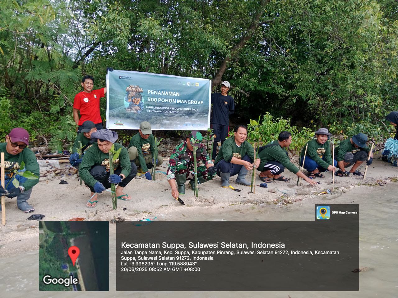 Danramil-01/Suppa Lettu Inf Jamaluddin mengatakan bahwa penanaman bibit pohon mangrove sebanyak 500 pohon dilaksanakan oleh Koramil bekerjasama dengan stakeholder terkait dan masyarakat setempat.