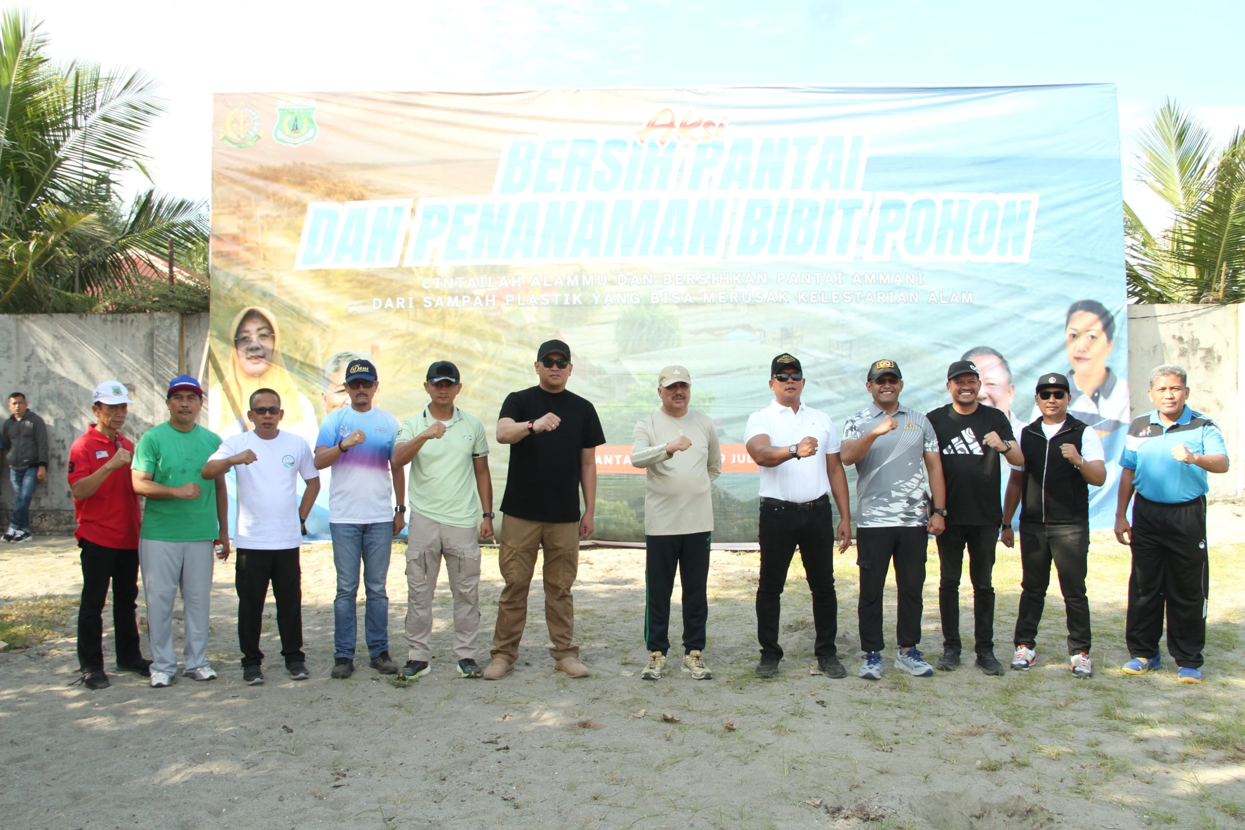 Pinrang_ Dandim 1404/Pinrang Letkol Inf Abdullah Mahua, S.H.I., M.M., bersama Forkopimda Pinrang menghadiri kegiatan bersih pantai dan penanaman bibit pohon yang dilaksanakan dalam rangka memperingati Hari Ikatan Adhyaksa Dharmakarini (IAD) ke-25 tahun 2025, bertempat di Pantai Harapan Ammani Kecamatan Mattiro Sompe Kabupaten Pinrang, Sabtu (19/07/2025).