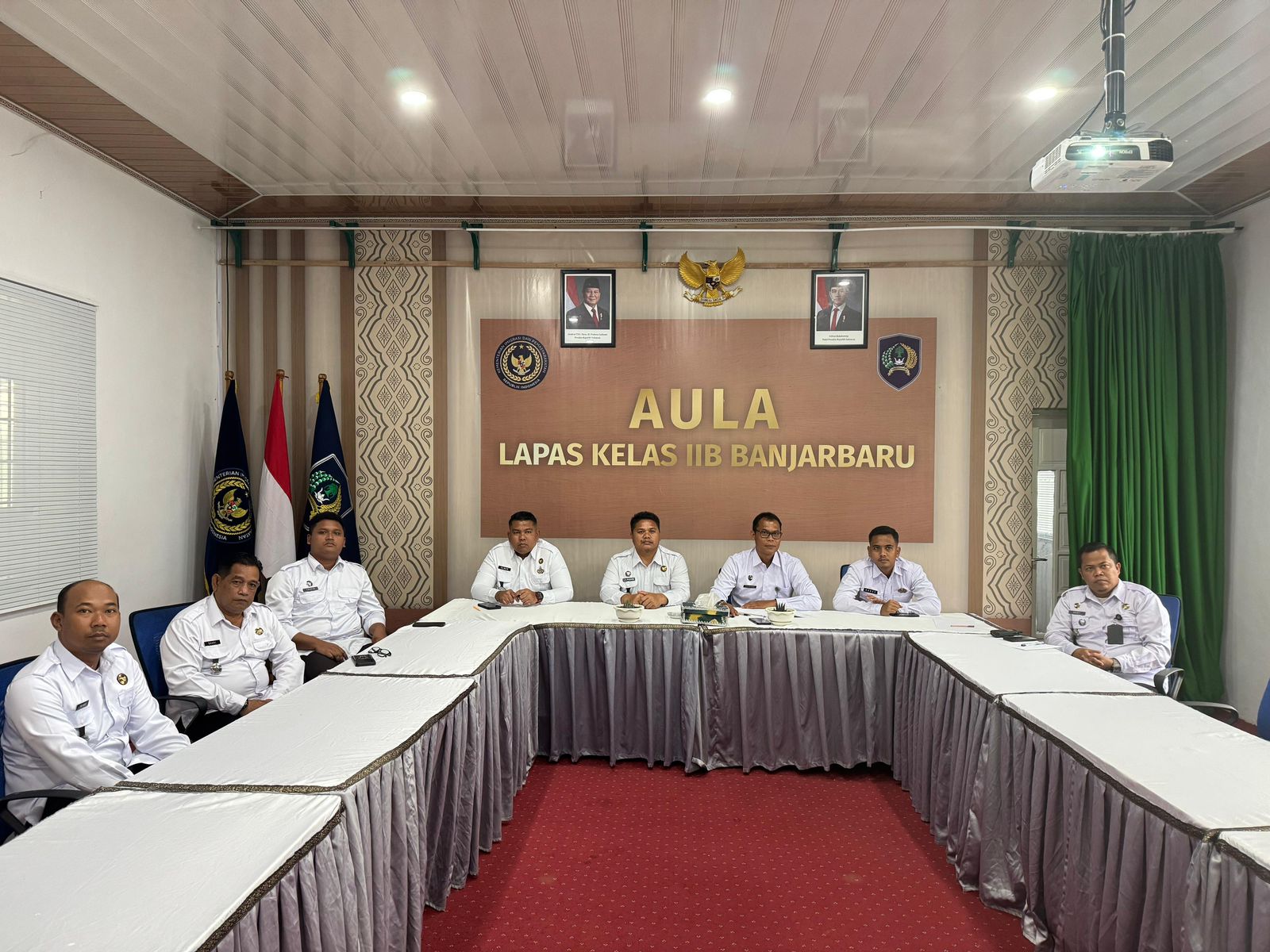Banjarbaru, INFO_PAS – Lembaga Pemasyarakatan (Lapas) Kelas IIB Banjarbaru mengikuti pengarahan Direktur Jenderal Pemasyarakatan (Dirjenpas), Mashudi, Senin (14/7). Kegiatan yang berlangsung secara daring melalui zoom meeting ini diikuti oleh Kepala Lapas, I Made Supartana, bersama jajaran pejabat struktural di Aula Lapas.