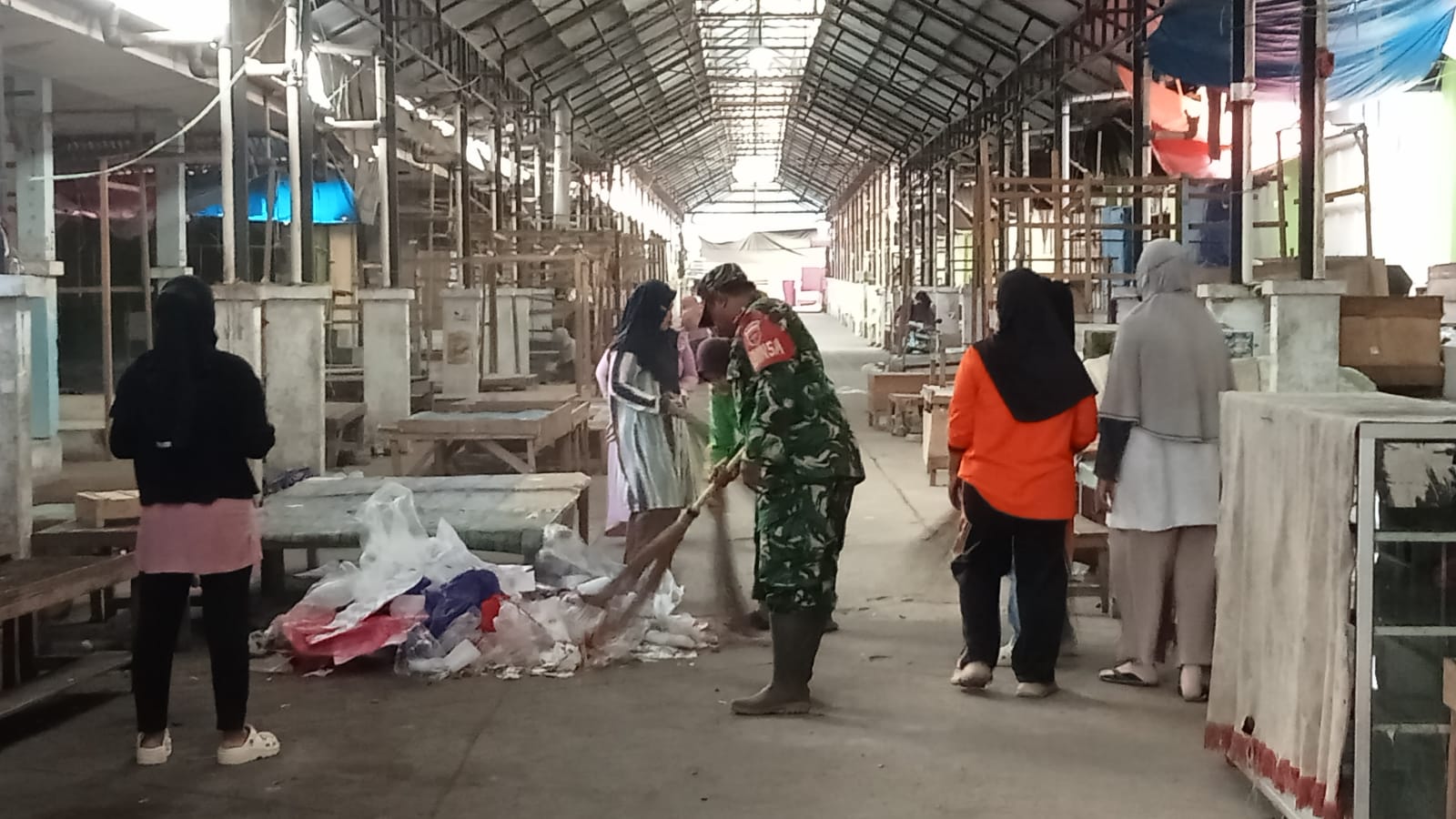 Kegiatan ini merupakan bagian dari upaya TNI dalam mendukung kebersihan lingkungan serta menjalin sinergi dengan masyarakat untuk menciptakan kondisi pasar yang sehat dan tertata.