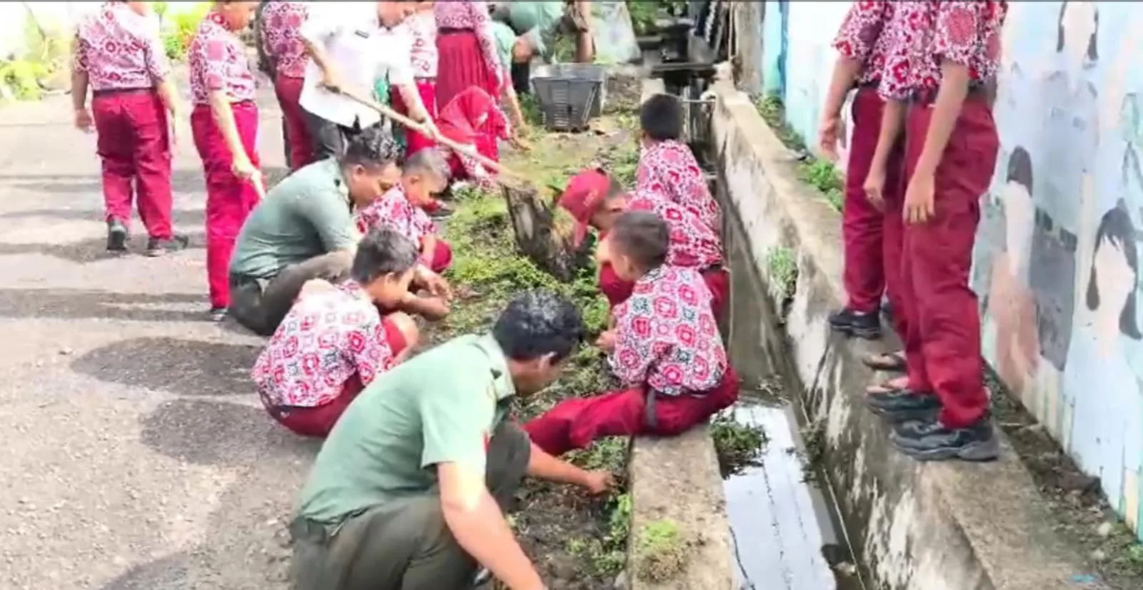 Kegiatan tersebut melibatkan para siswa, guru, serta personel TNI yang secara bersama-sama membersihkan saluran air dari sampah dan lumpur yang dapat menghambat aliran air. Selain itu, halaman sekolah juga dirapikan agar tercipta lingkungan yang bersih, rapi, dan nyaman untuk proses belajar mengajar.