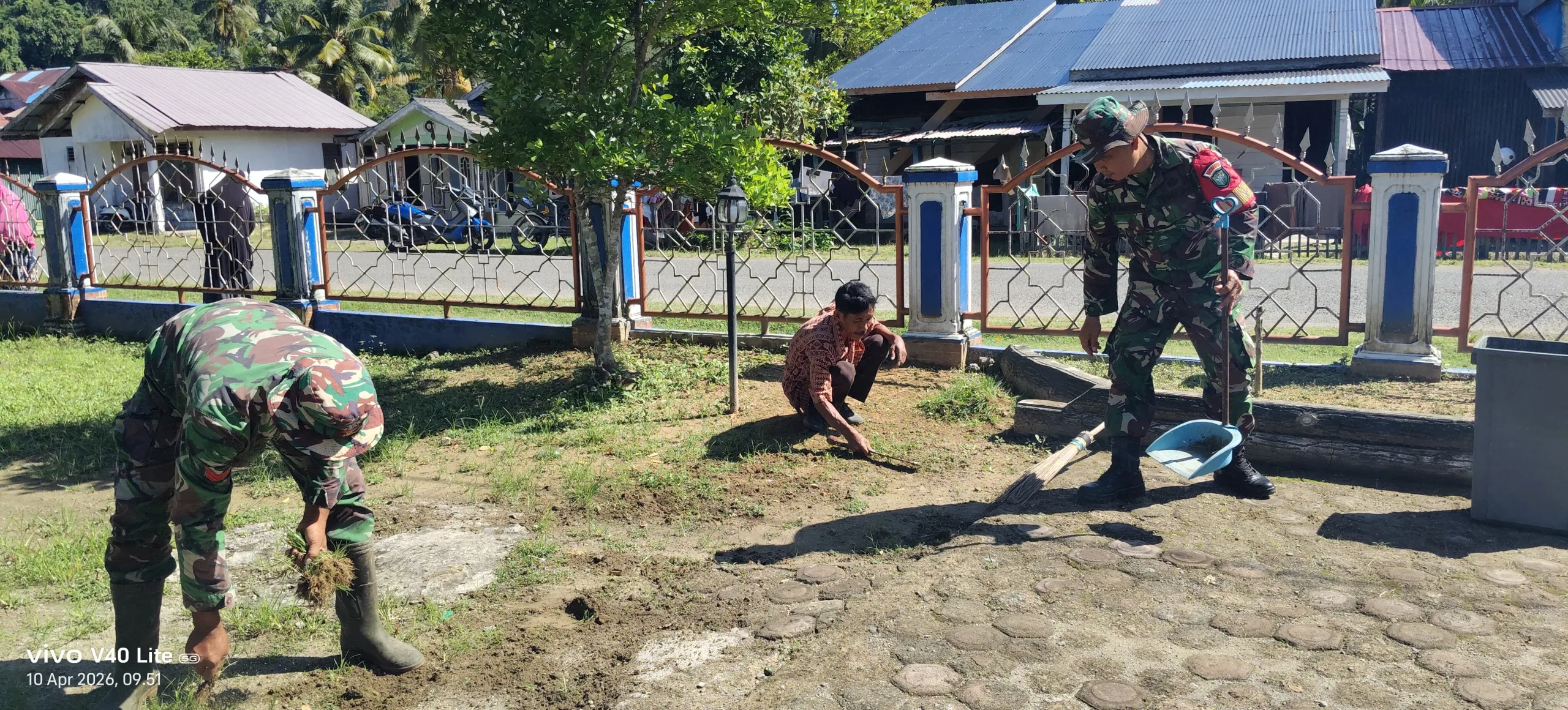 Simeulue –  Babinsa Posramil Teupah Barat, Kodim 0115/Sml, Korem 012/Tu, melaksanakan Gotong Royong Bersama, Babinsa Dan Warga di Desa Awe Kecil, Kecamatan Teupah Barta, Kabupaten Simeulue. Sabtu (11/04/2026).