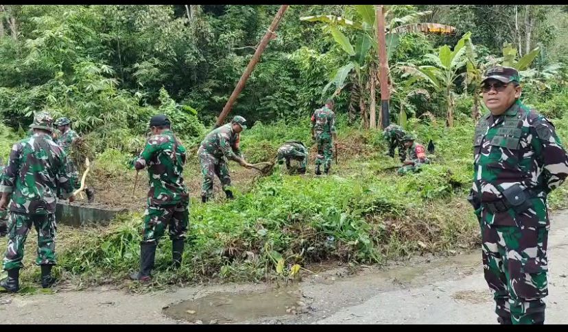 Personil Kodim 1502/Masohi melaksanakan pembersihan Untuk Pembanguan Pos Pengamanan.