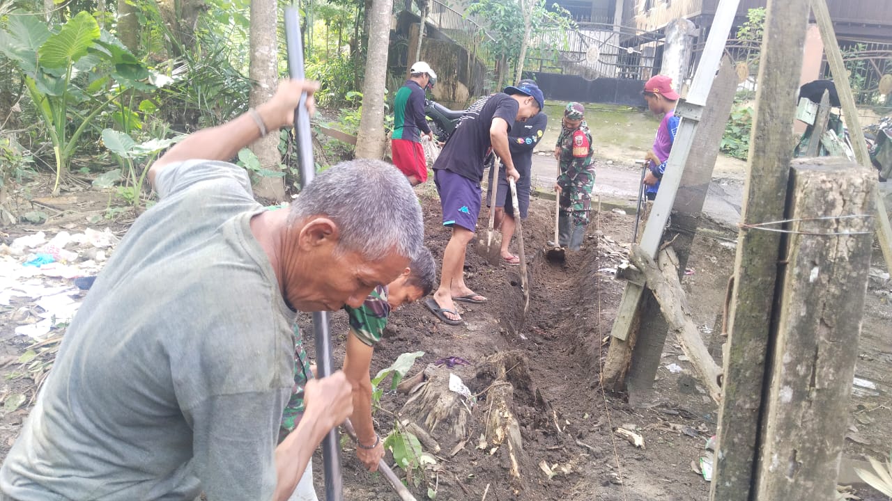 Enrekang _ Wujudkan hidup sehat dan eratkan hubungan yang baik dengan warga binaan, Personil Koramil 02/Enrekang yang di Pimping Ba Tuud Serma Bakri Melaksanakan karya bakti pembersihan selokan dari tanah, rumput dan sampah lainnya sepanjang 150 meter di Kel. Lewaja Kec. Enrekang Kab. Enrekang, Selasa (29/09/2025).