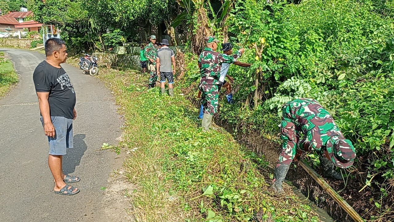 Enrekang – Anggota Koramil 1419-03/Baraka di pimpin Peltu Arsyad Melaksanakan karya bakti pembersihan selokan dari tanah, rumput dan sampah lainnya sepanjang 150 meter di Dusun Matarim Desa Salukanan Kec. Baraka Kab. Enrekang, Kamis (19/06/2025)