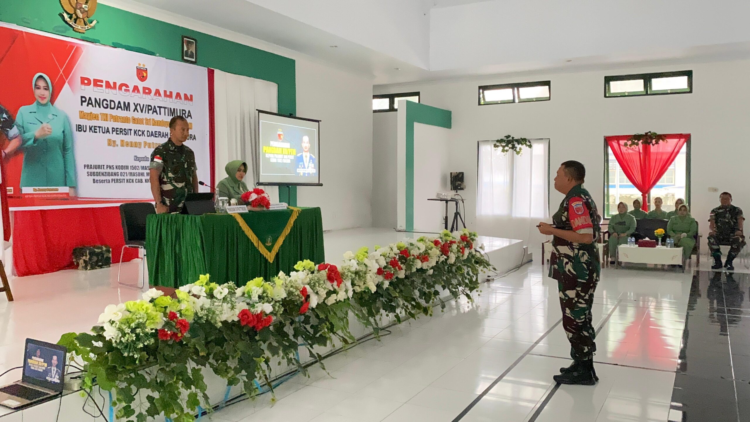 Dalam Rangka Kunjungan Kerja Pangdam XV/Pattimura Mayjen TNI Putranto Gatot Sri Handoyo, S. Sos., M.M di dampingi Ketua Persit KCK Daerah XV/Pattimura berkesempatan memberikan pengarahan kepada Personil, PNS, dan Persit KCK Cab. XXV Kodim 1502/Masohi yang bertempat di Aula Jenderal M. Yusuf Kodim 1502/Masohi.