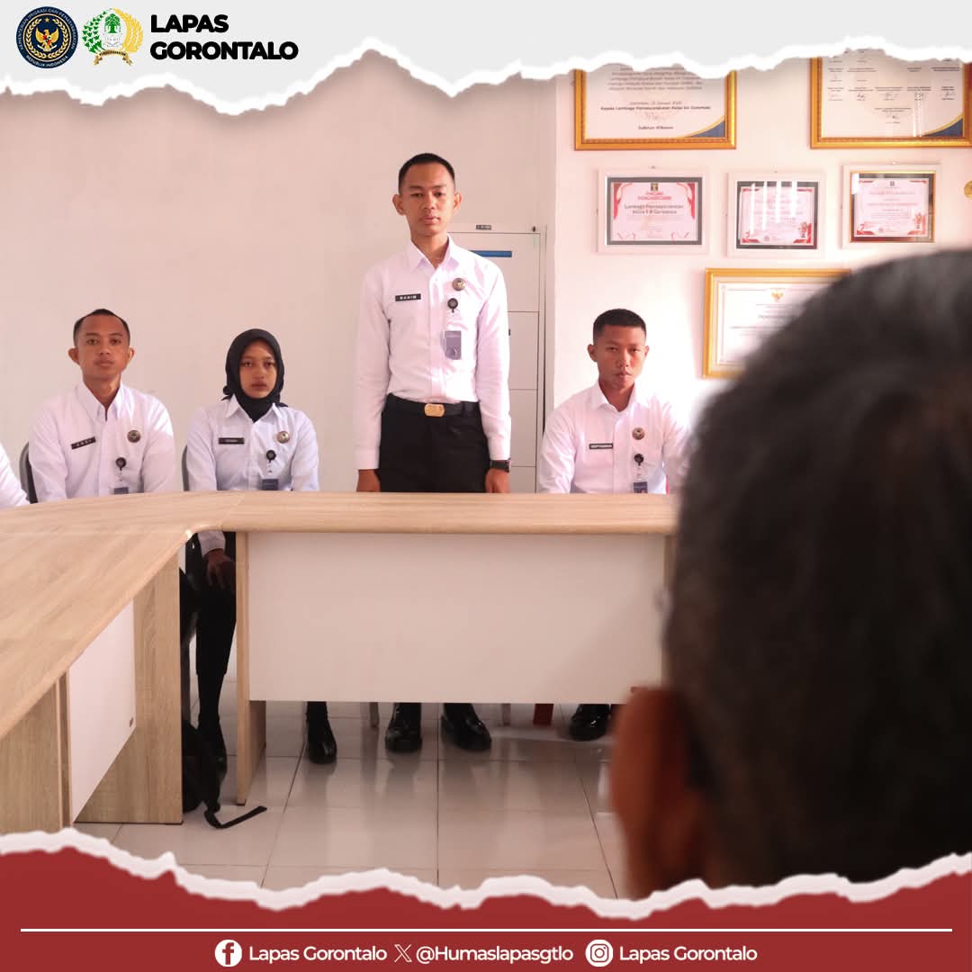 Gorontalo – INFO_PAS : Kepala Lembaga Pemasyarakatan (Kalapas) Kelas IIA Gorontalo, Sulistyo Wibowo, secara resmi menyambut kehadiran tujuh orang Calon Pegawai Negeri Sipil (CPNS) Kementerian Imigrasi Dan Pemasyarakatan (Kemenimipas), pada Senin (01/07). Kegiatan penyambutan ini berlangsung di ruang rapat Lapas Gorontalo dan turut dihadiri para pejabat struktural Eselon IV.