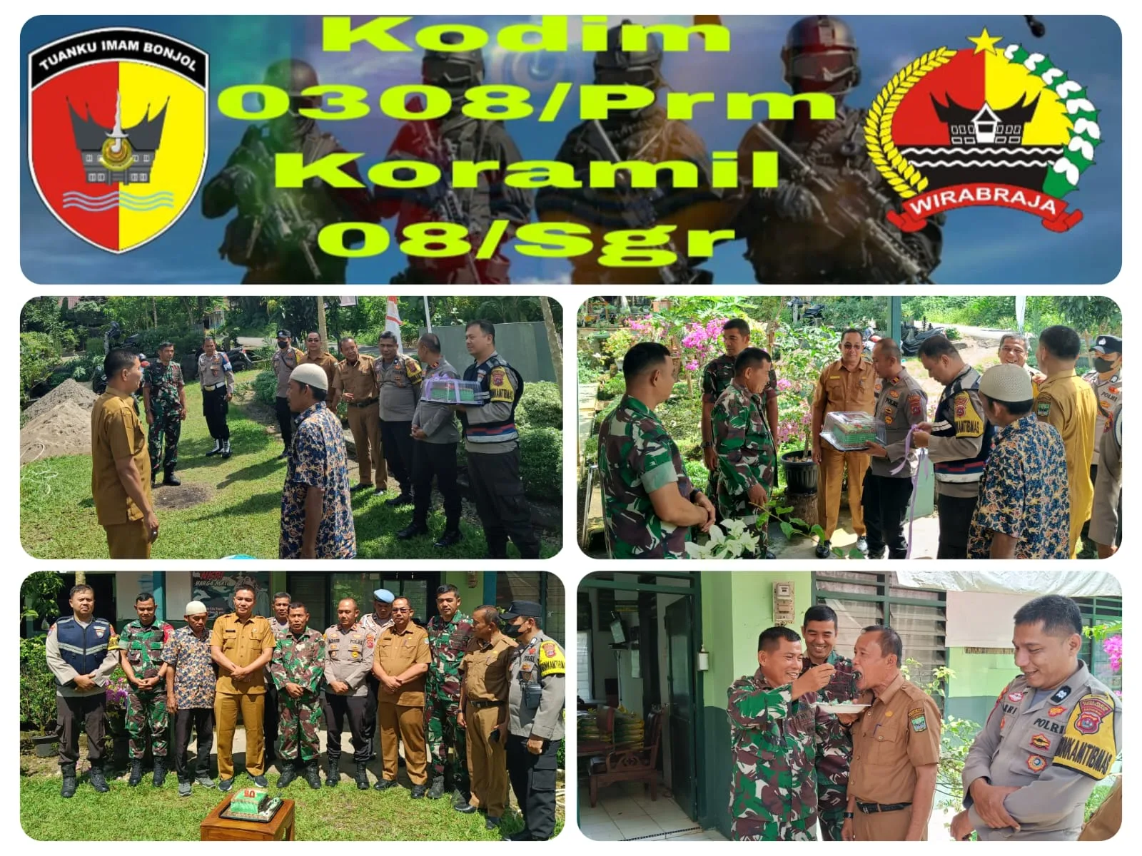 “Tujuan kami datang ke kantor Koramil 08/Sgr tidak lain untuk memberikan ucapan Selamat Ulang Tahun TNI yang ke-80 Tahun,” ucap Iptu Muhammad Basir SH