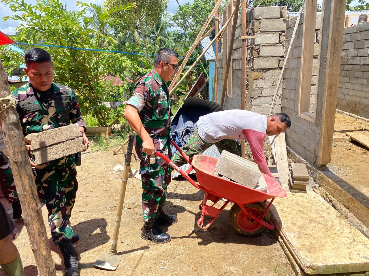 GORUT, Persiapan pelaksanaan TNI Manunggal Membangun Desa (TMMD) ke-124 Tahun Anggaran 2025 di wilayah Kodim 1314/Gorontalo Utara (Gorut) terus menunjukkan perkembangan signifikan. Salah satu kegiatan pra-TMMD yang sedang berjalan adalah pembangunan Rumah Tidak Layak Huni milik keluarga Bapak Yunus Podu dan Bapak Rustam Didipu, kini telah mencapai progres 30%, bertempat di Desa Ombulodata Kec. Kwandang Kab. Gorontalo Utara. Selasa (22/4/2025).
