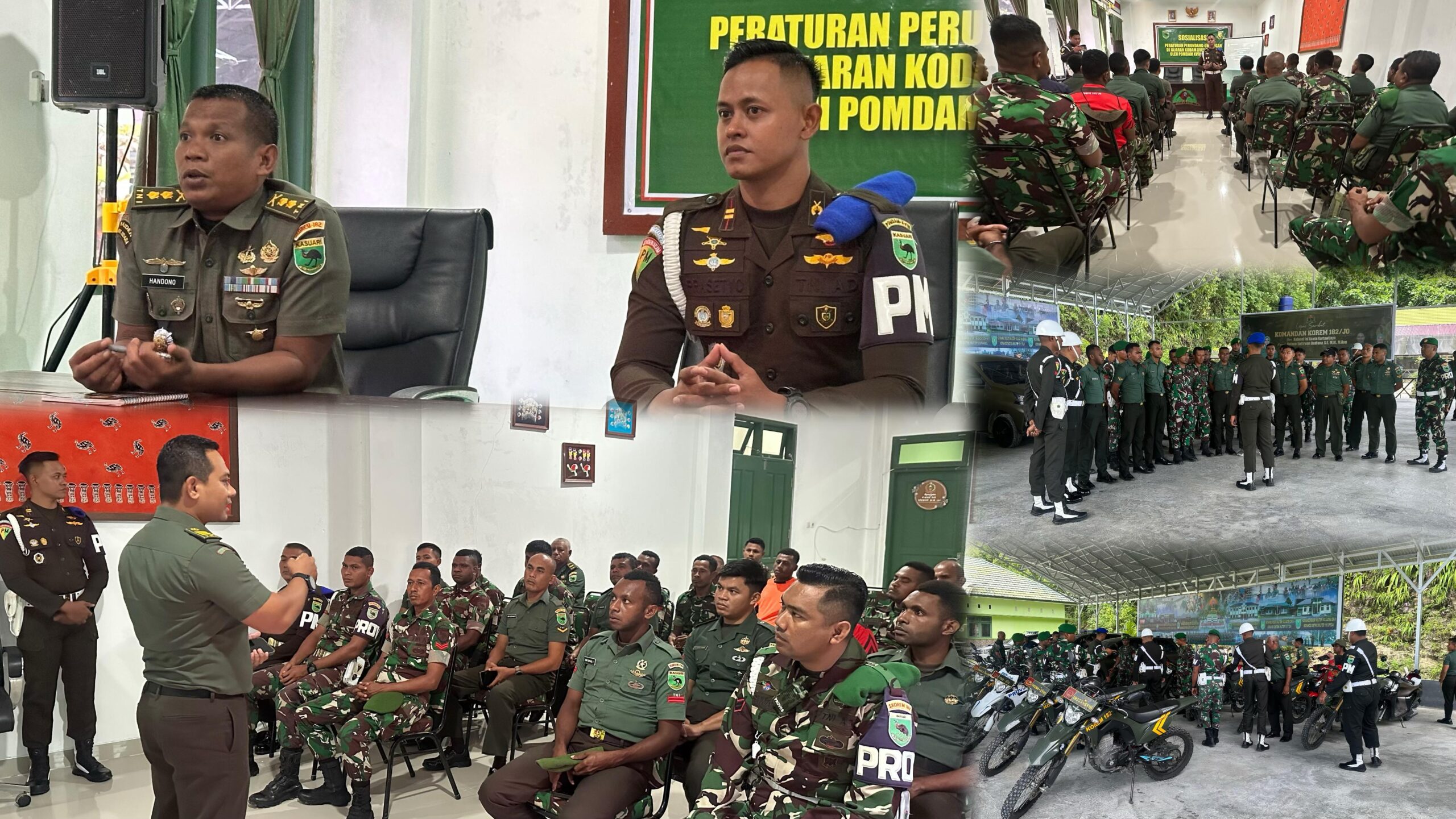 Demi meningkatkan pemahaman dan kesadaran hukum di kalangan prajurit TNI AD. Prajurit Korem 182/JO mengikuti Kegiatan Sosialisasi peraturan perundang-undangan dari Dansubdenpom XVIII/1-2 Fakfak di Aula Korem 182/JO, di Distrik Fakfak Barat, pada hari Kamis, (24/4/2025).