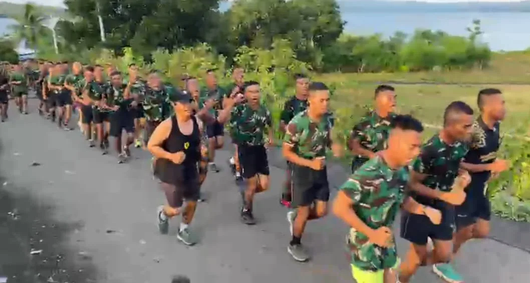 3. Prajurit Muda Denma Brigif TP 31/PS Konsisten Asah Kemampuan Fisik dengan Program Lari Pagi dan Sore di Wilayah Calabai.