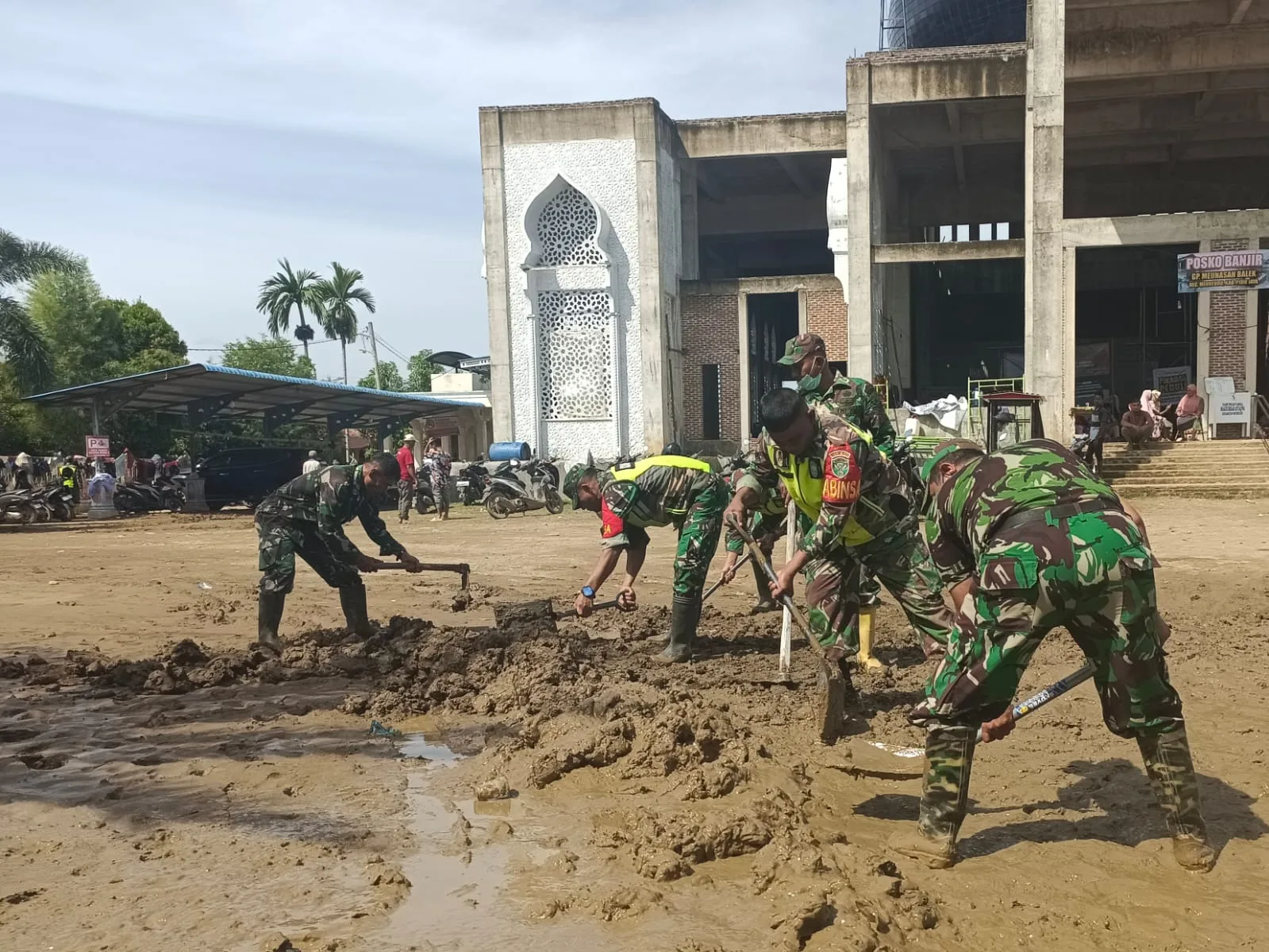 Tim Satgas bencana alam Kodim 0102/Pidie terus menyasar berbagai titik terdampak, terutama fasilitas umum dan rumah ibadah, sebagai bentuk dukungan moral dan fisik kepada masyarakat yang masih berjuang bangkit dari musibah.