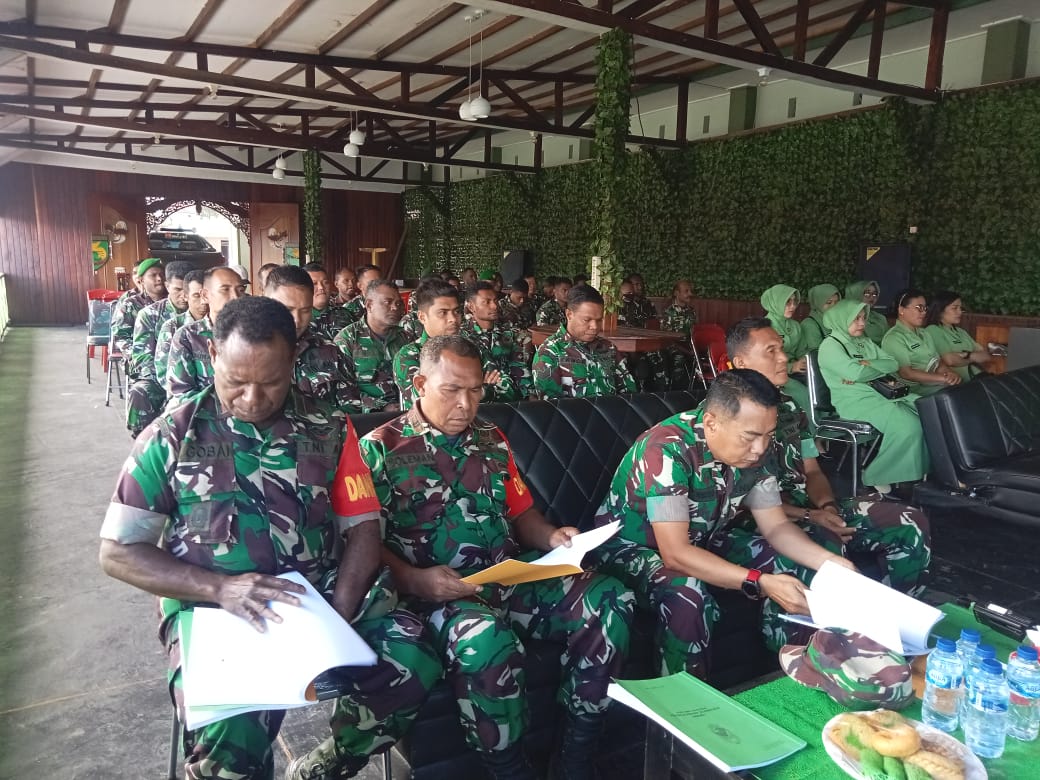 Rapat anggota tahunan Primkop Kartika kartika Harapan Baru Tahun 2024 dengan Thema “Dengan Sinergitas Koperasi Angkatan Darat Kita Bangun Usaha Yang Mandiri Dan Handal Guna Mewujudkan Kesejahtraan Anggota Beserta Keluarganyya” yang dipimpin oleh Dandim 1703/Deiyai Letkol Inf Ari Iswoyo Timor, S.Hub, Int yang bertempat di Aula Gotong Royo Kodim 1703/Deiyai jln.Tigi Doo, Distrik Tigi Kab. Deiyai, Senin 14 April 2025.
