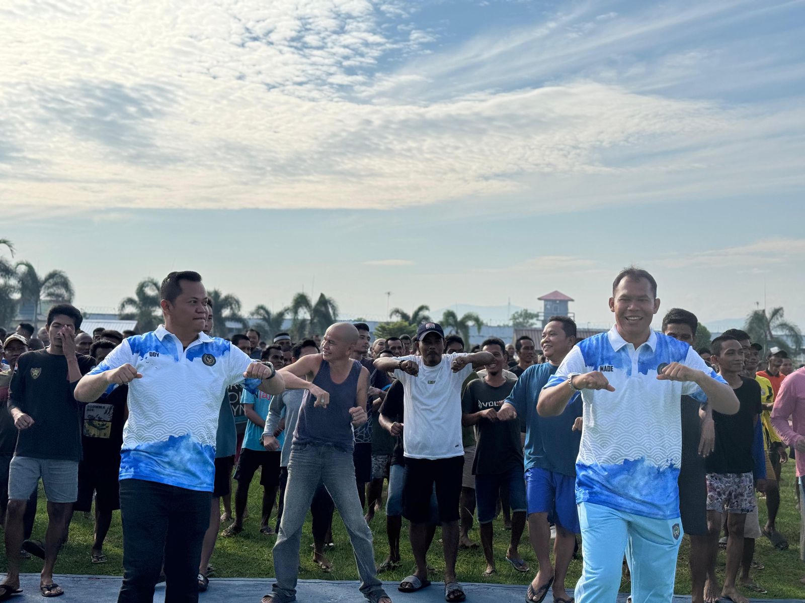 Banjarbaru, INFO_PAS – Ribuan Warga Binaan Lembaga Pemasyarakatan (Lapas) Kelas IIB Banjarbaru mengikuti senam kebugaran tunuh guna meningkatkan kesehatan tubuh. Senam yang berlangsung di lapangan alun-alun Labaru, Jumat (11/7) turut diikuti Kepala Lapas Banjarbaru, I Made Supartana, para Pejabat Struktural, dan jajaran staf pegawai.