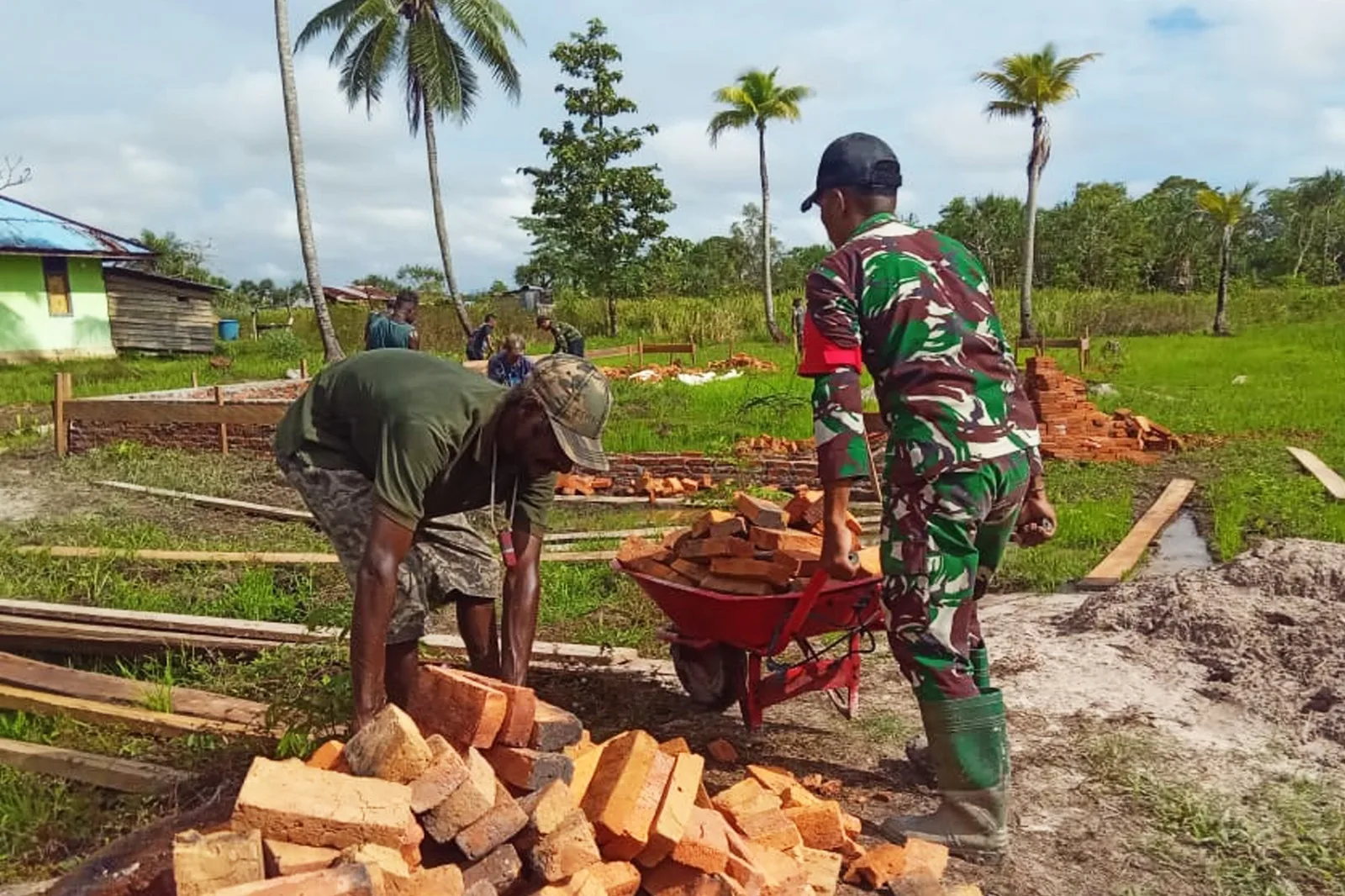 ”Kegiatan kerja bakti tersebut bertujuan membantu meringankan beban keluarga Bapak Felikus Kumuye dalam membangun rumah. Saat ini pembangunannya masih pada tahap pengecoran dan pemasangan batu bata sebagai pondasi”. ujar Kapten Inf Latupono.