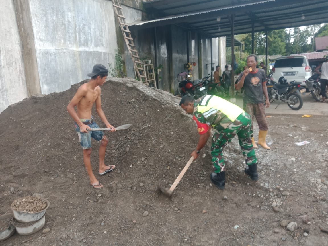 Aidil, seorang buruh bangunan yang bekerja membuat lantai rumah tersebut, mengaku sangat terbantu dengan kehadiran Babinsa.