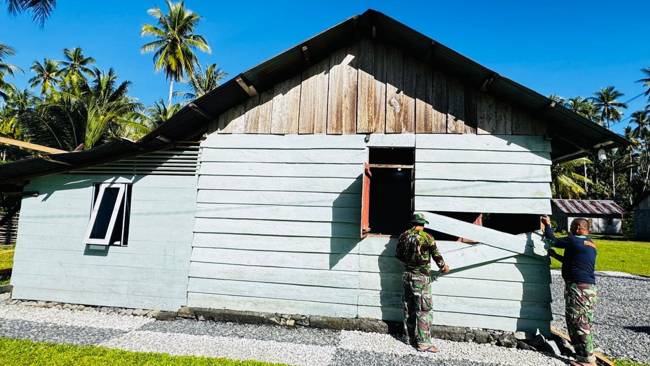 Salah satu Rumah Tidak Layak Huni (RTLH) bapak Efendy Malikito sudah mulai dilaksanakan pembongkaran oleh satgas Tentara Manunggal Membangun Desa (TMMD) ke 124 Kodim 1502/Masohi Ta. 2025 yang dilaksanakan di Ds. Waraka Kec. Teluk Elpaputih Kab. Malteng. Minggu (11/05/2025).