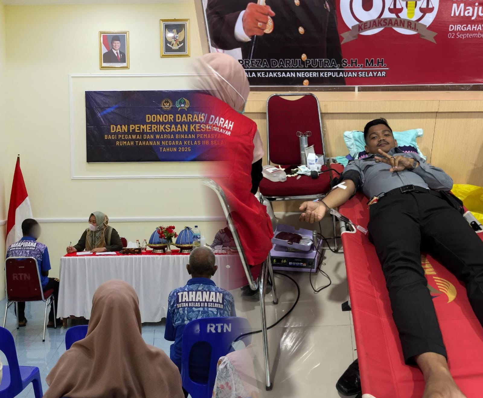 Kegiatan donor darah dilaksanakan di Kantor Kejaksaan Negeri Kepulauan Selayar sebagai rangkaian kegiatan Hari Lahir Kejaksaan RI ke-80. Jajaran Rutan Selayar turut berkolaborasi dengan Kejaksaan Negeri Kepulauan Selayar melalui kegiatan sosial ini.