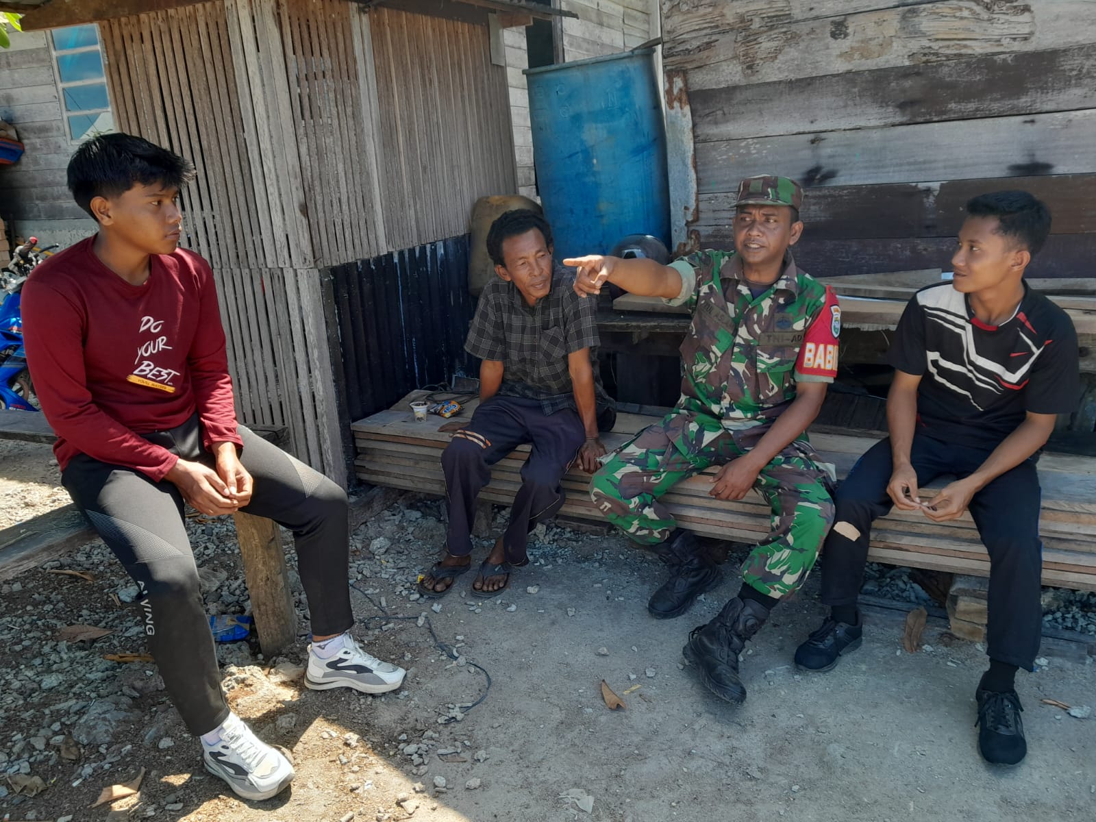 Sambangi Desa Binaan, Babinsa Koramil 02/Lateng Gelar Komsos dengan Pemuda Bangun Semangat Kebangsaan